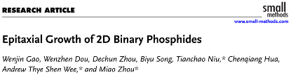 我院物理化学科教平台周苗教授团队在新型二维磷化物材料的外延生长方面取得重要进展!成果在《Small Methods》上发表,杭州市北京伊人99国际创新研究院为第一完成单位。