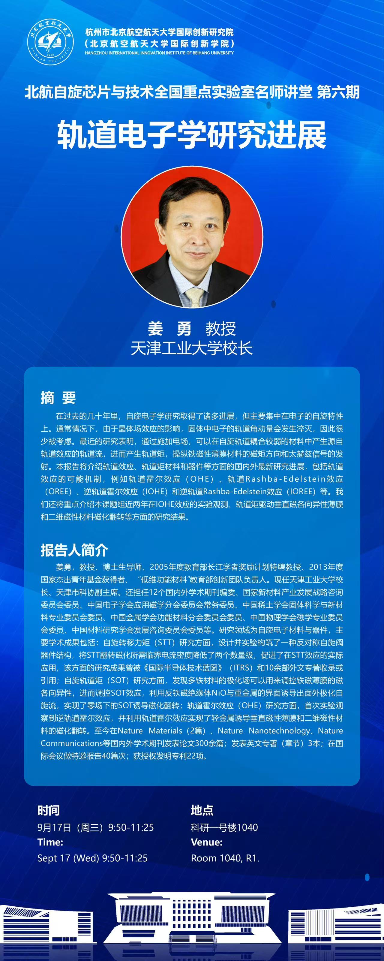 活动主题:自旋芯片与技术全国重点实验室名师讲堂第六期