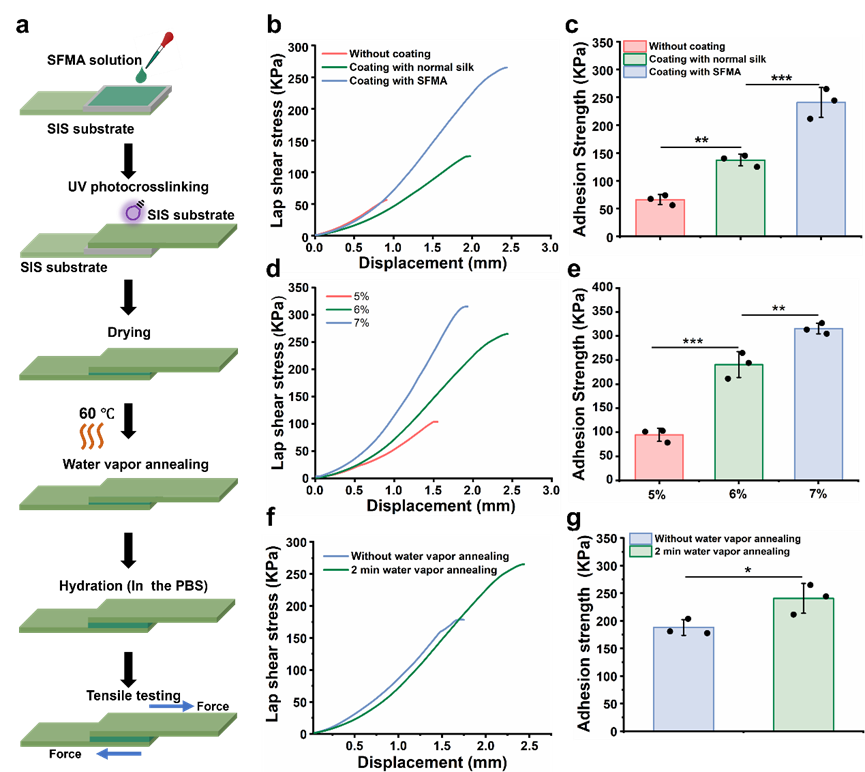 △图3.光固化和水蒸气退火处理增强了SFMA微槽涂层和SIS基底之间的界面结合强度